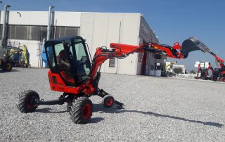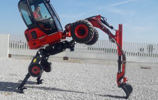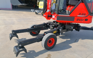 R25: An evolution from the 1500M the R25 retains the same minimum width but has a new engine and uprated hydraulics for extra performance. Standard features include cabin, mini joystick controls and hydraulically extendable front legs.