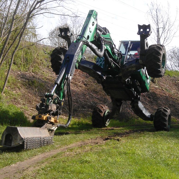 A specialist contracting company was born in the late 90s, (Mountain Masters) which further established the use in forestry for vegetation control and the construction of mountain bike trails. Slowly, civil engineering contractors started to hire the machines on steep or difficult access terrain where the viability and cost-effectiveness was soon proven.